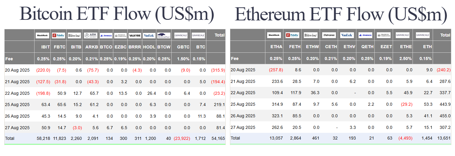 Trong thứ tư, các quỹ BTC spot ETF Hoa Kỳ cũng tiếp tục có dòng vốn vào hơn 81 triệu USD. ETH spot ETF vẫn thu hút dòng tiền vào lớn hơn 307 triệu USD.