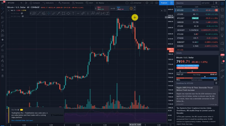 Và ta cũng thấy hôm nay giá bitcoin cũng đã điều chỉnh giảm xuống từ giá cao nhất trong 5 ngày qua là 8.300$ xuống hơn 7.800$. Tuy nhiên, nhìn xu hướng chung của thị trường trong 1 năm qua là tăng lên.