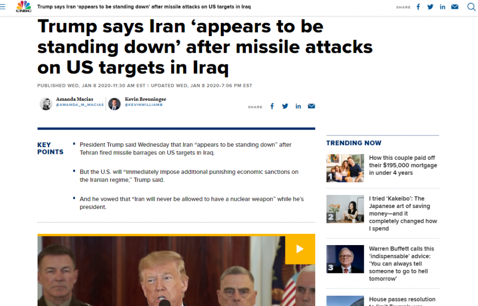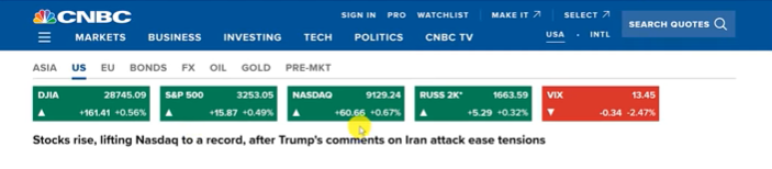 Hiện tại, thị trường chứng khoán đang có sự bất ổn, tuy nhiên chưa chắc đã có suy thoái tài chính trong năm nay hoặc năm tới. Thị trường chứng khóa cũng có thể bị đẩy giá, nhưng do thị trường này là một thị trường lớn cần số tiền rất lớn mới có thể tác động được. Những ngày qua, tình hình chính trị giữa Mỹ và Iran đã khiến thị trường biến động lên xuống từng ngày.