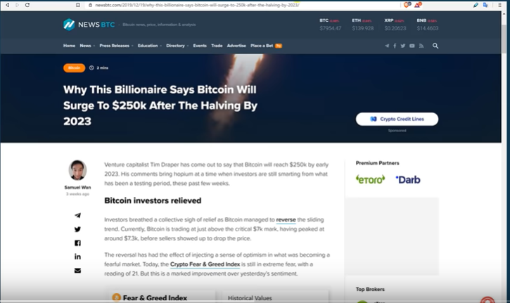 Còn với thị trường crypto, cụ thể ở đây là bitcoin, nhiều người đưa ra dự đoán bitcoin tăng giá. Tỷ phú – nhà đầu đầu tư mạo hiểm Tim Draper đã lên CBC phát biểu rẳng ông tin tưởng niềm tin vào bitcoin sẽ đạt được mức giá 250.000 đô-la.