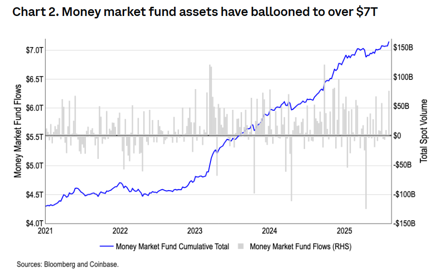 Họ cũng nhấn mạnh rằng việc Fed nới lỏng lãi suất vào tháng 9 có thể kích hoạt sự tham gia mạnh mẽ hơn vào thị trường crypto, đặc biệt khi hơn 7.2 nghìn tỷ USD hiện đang nằm trong các quỹ thị trường tiền tệ của Mỹ có thể chảy vào các tài sản rủi ro cao.