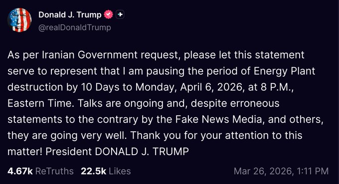 Nguyên nhân chính khiến thị trường xuất hiện các phiên giảm gần đây đến từ những thông tin trái chiều liên quan đến căng thẳng giữa Mỹ và Iran. Tổng thống Mỹ đưa ra thông điệp cho rằng Iran đang muốn đạt được một thỏa thuận hòa bình, nhưng đồng thời cũng cảnh báo rằng Iran chưa thể hiện sự nghiêm túc và có thể đối mặt với hậu quả nếu không hành động sớm. Ngược lại, phía Iran lại thể hiện lập trường cứng rắn trên truyền thông. Hai bên đưa ra những tuyên bố mâu thuẫn về việc liệu có đang đàm phán hay không, và nếu có thì là đàm phán trực tiếp hay thông qua trung gian. Chính sự thiếu rõ ràng trong khái niệm “đàm phán” đã tạo ra nhiều suy đoán và khiến thị trường khó định hướng.