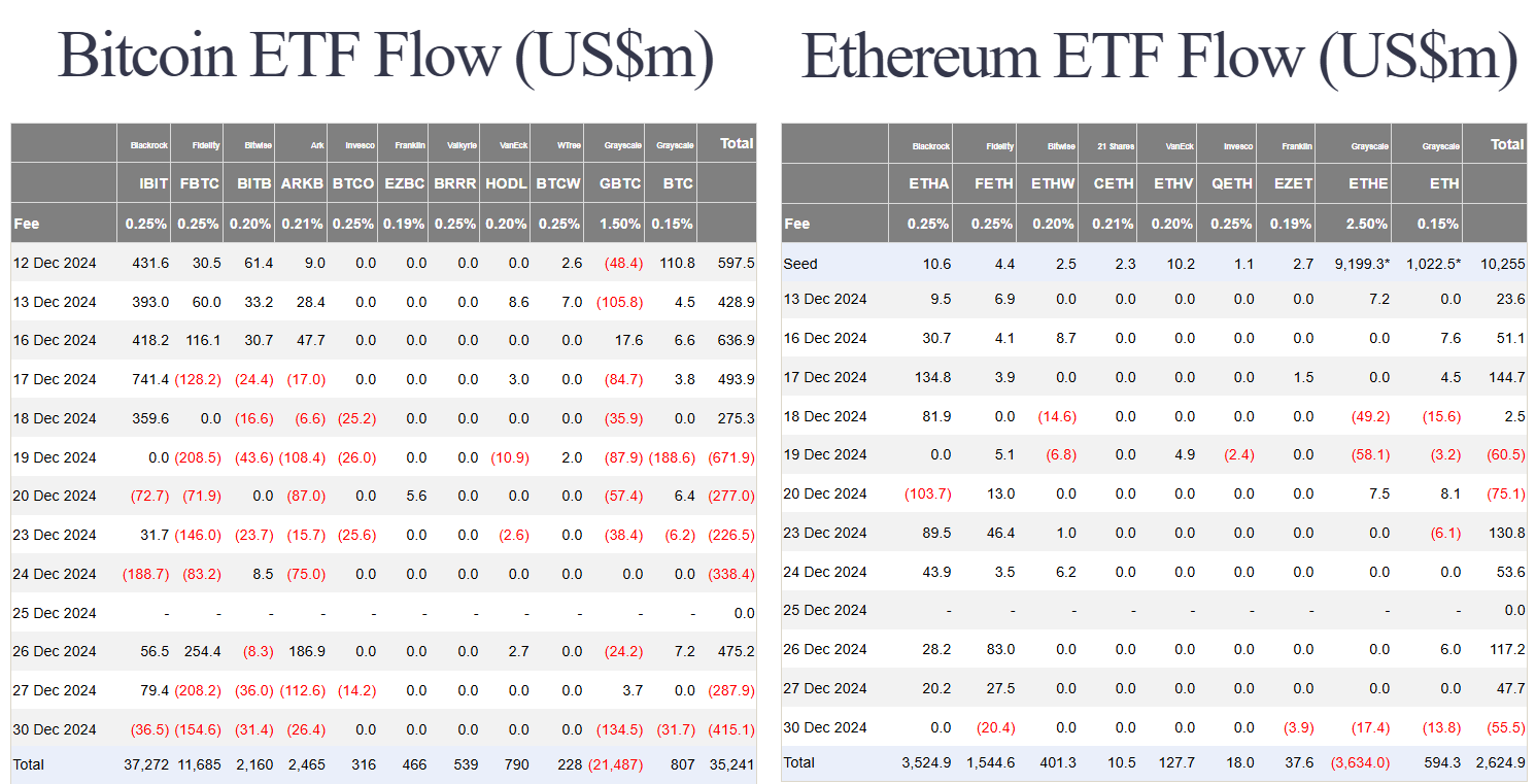Năm 2024 sắp kết thúc và nó là một năm rất tốt cho thị trường chứng khoán Hoa Kỳ cũng như cả BTC và crypto. Chỉ số S&P 500 Hoa Kỳ đã tăng gần 24%. Hay BTC đã tăng hơn 120%. Do đó, có nhiều người chốt lời cuối năm ở các tài sản khác nhau dẫn đến thị trường giảm.