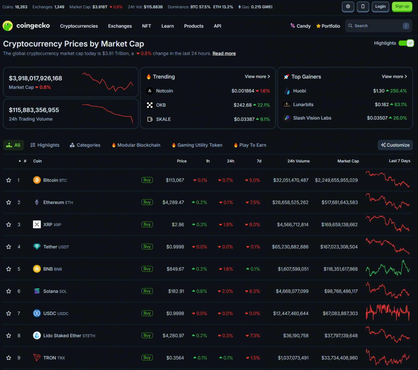 Bitcoin vẫn quanh 113,000 USD. Các altcoin lớn đều điều chỉnh nhẹ. Vốn hóa thị trường crypto là 3.9 nghìn tỷ USD.