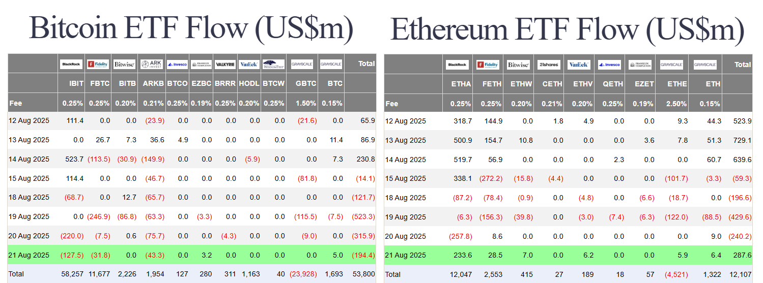 Dòng tiền tiếp tục rời khỏi các quỹ BTC spot ETF ở Hoa Kỳ cho thấy tâm lý lo lắng chờ đợi tin từ FED, hoặc cũng có thể có những nhà đầu tư chốt lời. Thứ sáu tại Mỹ, các quỹ BTC ETF có 194.4 triệu USD rời khỏi. Ngược lại, ETH spot ETF có dòng tiền vào trở lại với 287.6 triệu USD.