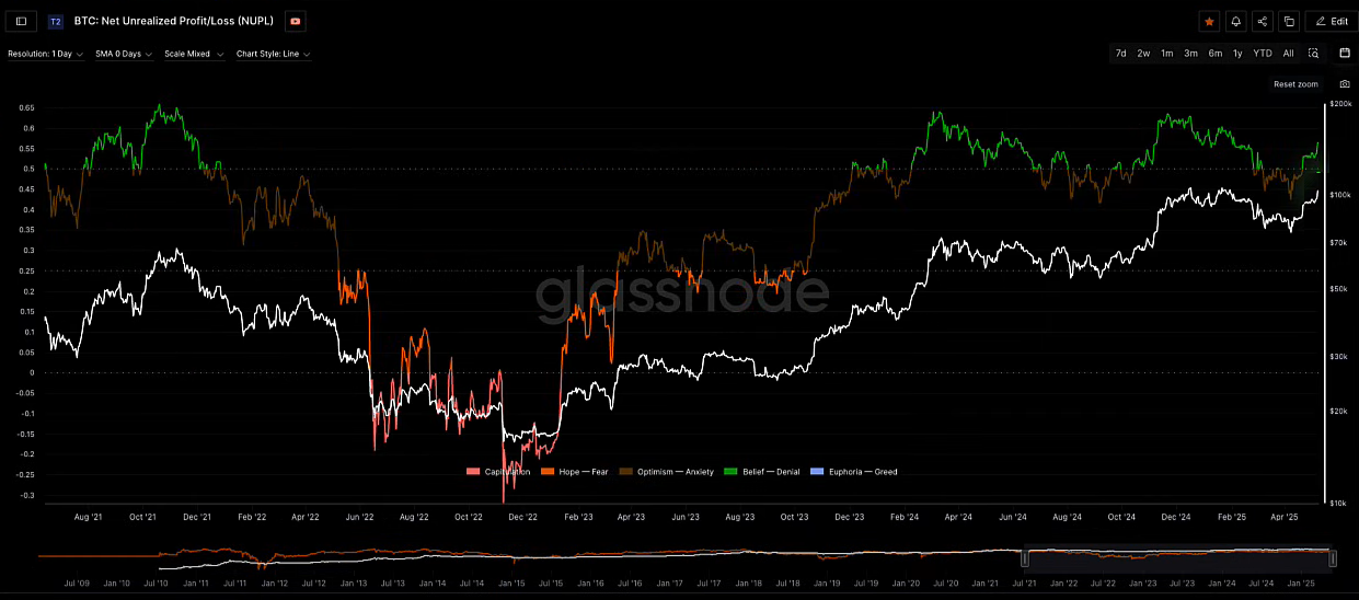 Chỉ số NUPL của BTC được nhiều bạn quan tâm. Hiện nay, Paolo thấy rằng dữ liệu này chưa phản ánh rõ sự tham gia của các tổ chức đầu tư, các quỹ BTC ETF tham gia mạnh mẽ những tháng gần đây. Tuy nhiên, thời điểm này, NUPL đang ở vùng màu xanh lá cây, thể hiện thị trường có lòng tin vào sự tăng trưởng hiện tại của BTC.