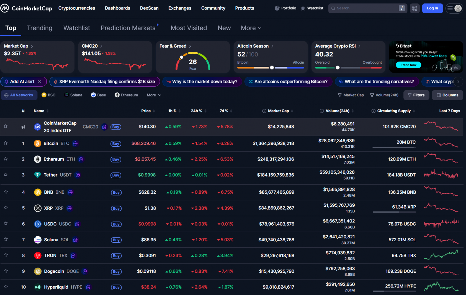 Crypto ngày qua đã giảm về quanh 68,000 USD. Hầu hết altcoin lớn đều giảm. Vốn hóa thị trường crypto giảm về 2.35 nghìn tỷ USD.