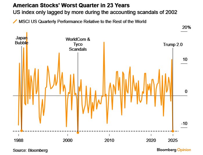 Chứng khoán Mỹ vừa trải qua quý tệ nhất trong 23 năm, kém hơn so với thị trường toàn cầu. Lần giảm mạnh gần nhất là vào 2002 (bê bối kế toán của Worldcom và Tyco).