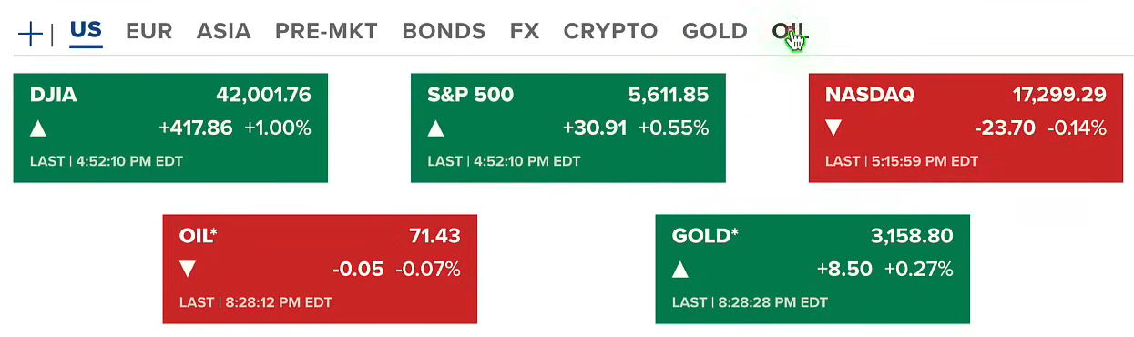 Chứng khoán Mỹ mở cửa phiên thứ hai (31/03-US) giảm mạnh nhưng kết thúc phiên hồi nhẹ lại ở hai chỉ số Dow Jones và S&P 500, còn Nasdaq vẫn giảm 0.14%. Hợp đồng dầu ở mức 71.4 USD/thùng. Vàng tiếp tục tăng lên 3158 USD/ounce.