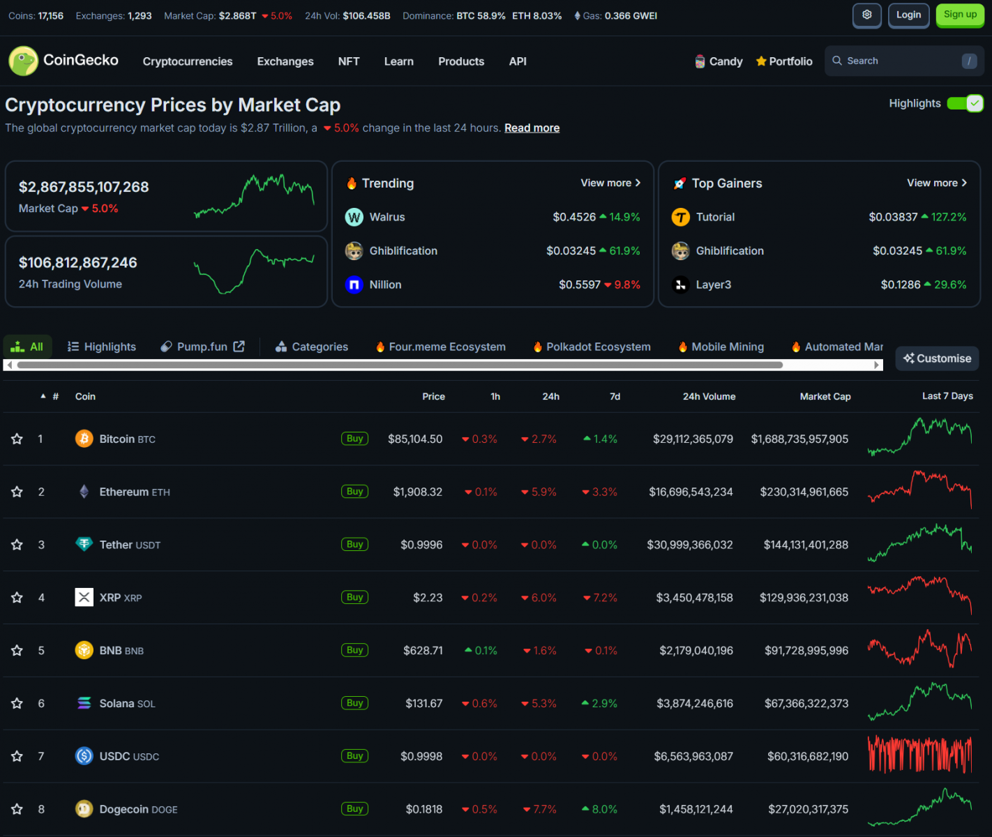 Về crypto, Bitcoin ngày qua quanh 87,000 USD nhưng sau đó đã giảm về quanh 85,000 USD. Nhiều altcoin lớn cũng điều chỉnh theo. Vốn hóa thị trường crypto là 2.86 nghìn tỷ USD.