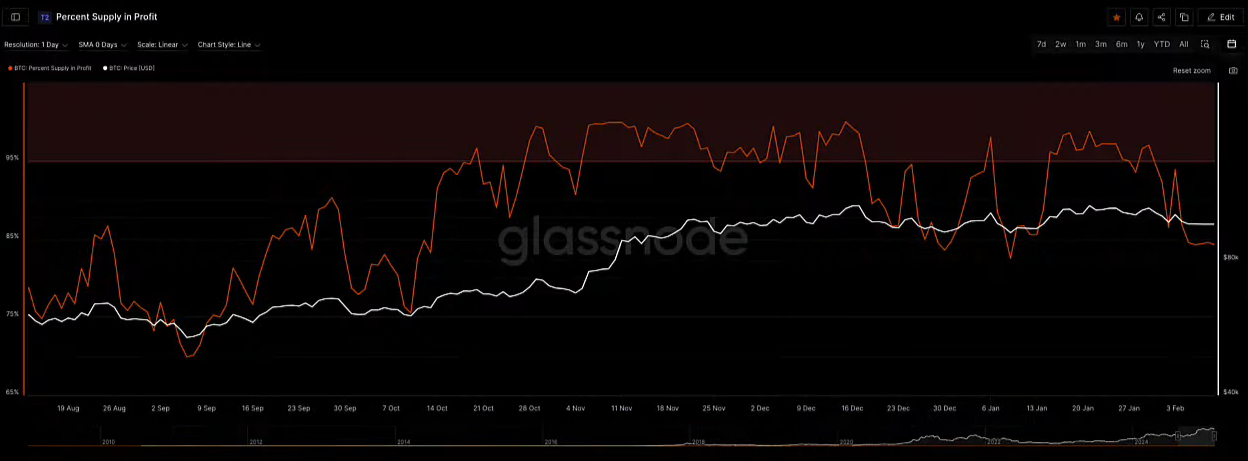 Tỷ lệ BTC có lời cũng giảm về 84.24% nằm dưới vùng màu đỏ.