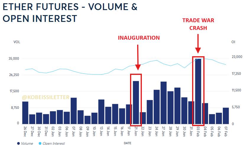 Ngoài ra, khối lượng giao dịch ETH cũng rất mạnh, với những đợt tăng đột biến vào ngày 21/1 (ngày nhậm chức của Tổng thống Mỹ) và ngày 3/2 (đợt sụt giảm thị trường).