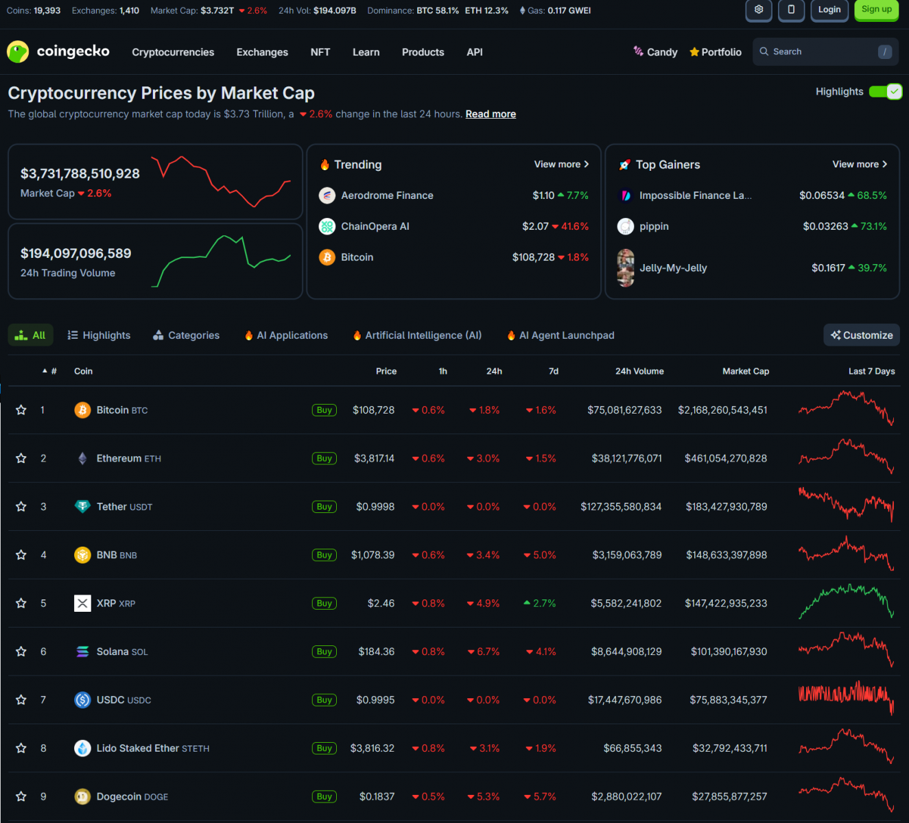 Thị trường crypto vẫn phản ứng tiêu cực sau tin của Fed. Bitcoin giảm mạnh về quanh 107,000 USD sau đó hồi nhẹ về 108,000 USD. Các altcoin lớn đa số điều giảm sâu hơn. Vốn hóa thị trường crypto cũng giảm về 3.73 nghìn tỷ USD.