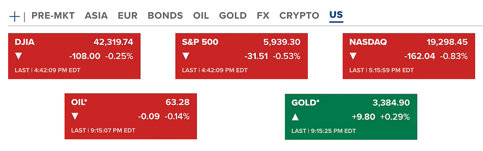 Chứng khoán Hoa Kỳ thứ năm (05/06-US) kết thúc với cả ba chỉ số đều giảm, Nasdaq giảm nhiều nhất 0.83%. Hợp đồng dầu giảm nhẹ nhưng vẫn quanh 63 USD/thùng. Vàng tăng nhẹ lên 3384 USD/ounce.