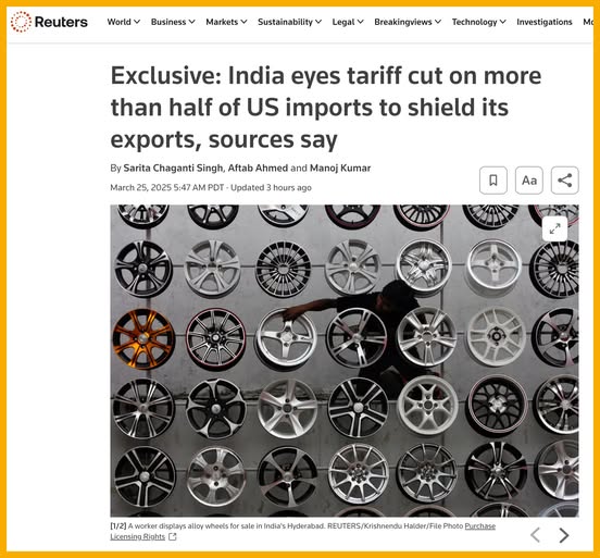 Ấn Độ cân nhắc cắt giảm thuế nhập khẩu đối với hàng hóa Mỹ. Theo thông tin từ Reuters, Ấn Độ sẵn sàng cắt giảm hoặc gỡ bỏ thuế nhập khẩu đối với hơn một nửa hàng hóa Mỹ, trị giá 23 tỷ USD, trong khuôn khổ một thỏa thuận thương mại đang được đàm phán. Đây sẽ là đợt giảm thuế lớn nhất trong nhiều năm, nhằm tránh chính sách thuế quan “có qua có lại” của tổng thống Trump.