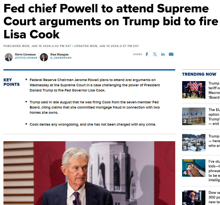 Chủ tịch Fed tham dự tranh luận ở tòa án tối cao của Lisa Cook