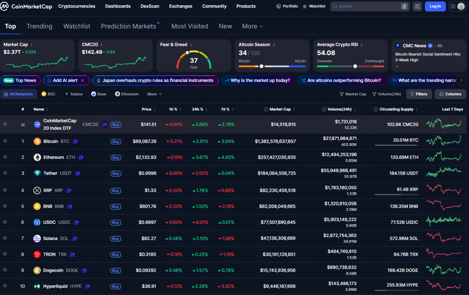 Thị trường crypto chủ nhật (05/04-US) tăng nhẹ khi BTC tăng lên quanh 69,000 USD. Các altcoin lớn đa số tăng nhẹ. Vốn hóa thị trường crypto tăng lên 2.37 nghìn tỷ USD.