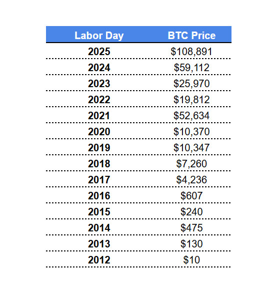 Giá Bitcoin mỗi dịp Lễ Lao Động từ 2012 đến nay cho thấy chu kỳ rõ rệt: từ 10 USD (2012) lên 130 USD (2013), 475 USD (2014), rồi trải qua nhiều lần tăng mạnh và “mùa đông crypto”, đến nay đã gần 109,000 USD. Dù biến động mạnh, xu hướng dài hạn vẫn là tăng trưởng.