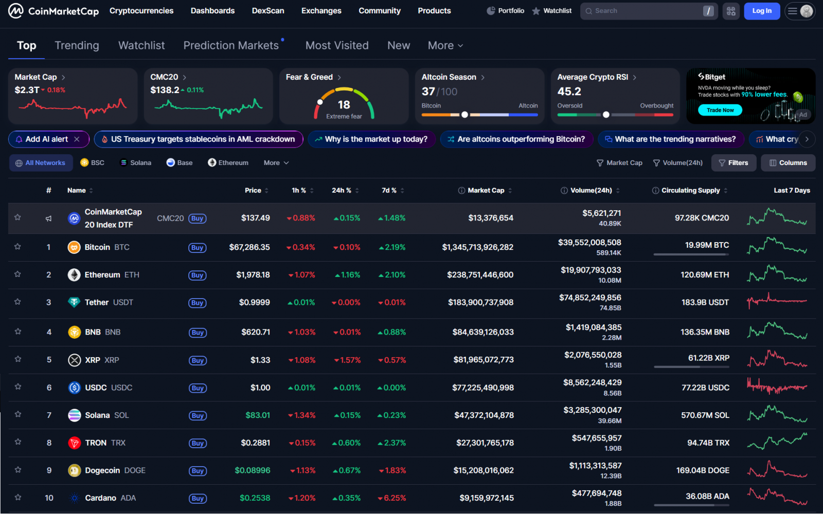 Bitcoin ngày chủ nhật tại Mỹ (08/03-US) giảm nhẹ về quanh 67,000 USD. Hầu hết các altcoin cũng giảm, một số đồng hồi nhẹ khi BTC hồi. Vốn hóa thị trường crypto ở mức 2.3 nghìn tỷ USD.